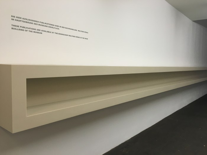 Tru, Hamburger Bahnhof, 2016 „These publications are available at the bookschop Walther König in the main buillding of the museum.“ „Die hier ausliegenden Publikationen sind in der Buchhandlung Walther König im Hauptgebäude des Museums erhältlich.“